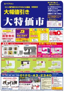 はじめてミシンを挑戦される方も、ミシンをお買い替えをお考えの方もお得なこの機会のぜひご来店ください。