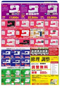 そのほか、チラシ掲載商品以外にもお得なミシンあり。店頭に予期せぬ掘り出し物があるかも♪