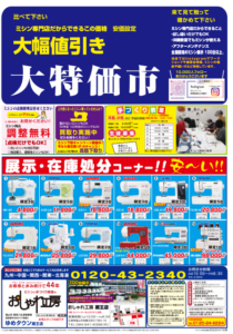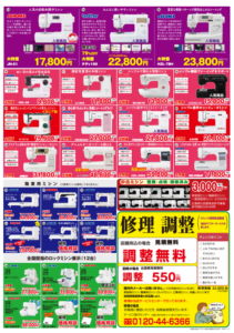 そのほか、チラシ掲載商品以外にもお得なミシンあり。店頭に予期せぬ掘り出し物があるかも♪